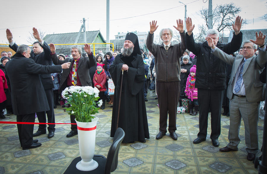Епископ Союза церквей ЕХБ Ион Мирон, председатель фонда «Мост в жизнь» Вальдемар Шредер и председатель Комитета ВС Приднестровья по общественным объединениям, спорту, информационной и молодежной политике Вячесав Тобух разрезали красную ленту на открытии Детского дома семейного типа в г. Бендеры.…