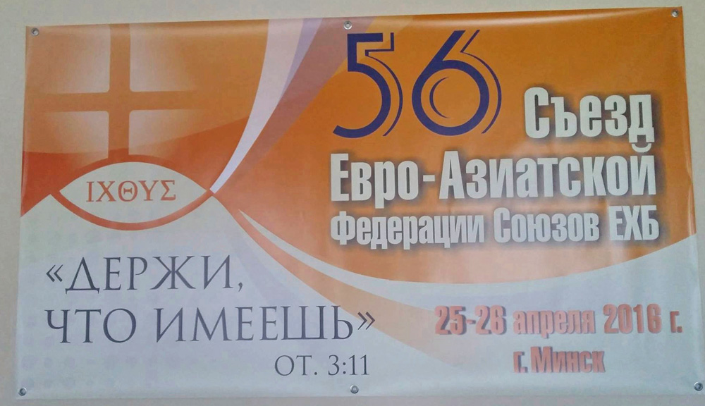 Обращение к церквам евангельских христиан-баптистов Дорогие братья и сестры! Мы, делегаты 56-го Съезда Евро-Азиатской Федерации Союзов евангельских христиан-баптистов, представляющие церкви Азербайджана, Армении, Беларуси, Грузии, Казахстана, Кыргызстана, Молдовы, России, Таджикистана, Туркменистана, Узбекистана, Украины, а также гости из Израиля, США, Финляндии, Эстонии…